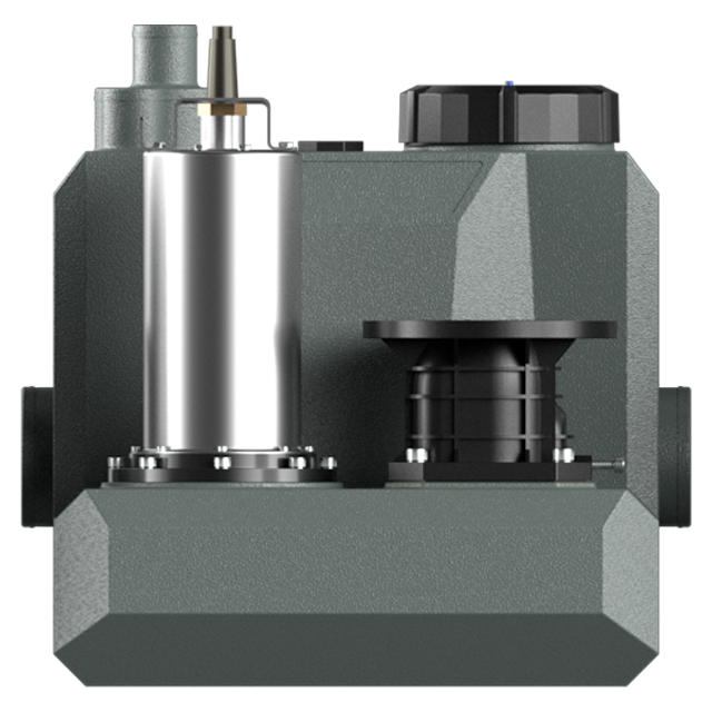 洗衣房干衣房整體距離廚房衛(wèi)生間距離較遠(yuǎn),長(zhǎng)距離水平傳輸存在排水不暢隱患,因此采用單獨(dú)一臺(tái)洗衣房專用提升泵的解決方案,將洗衣房廢水單獨(dú)排放。