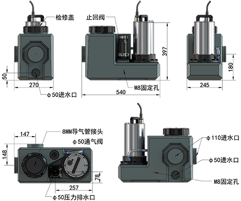 · 入水口:2×Φ110,2×Φ50
